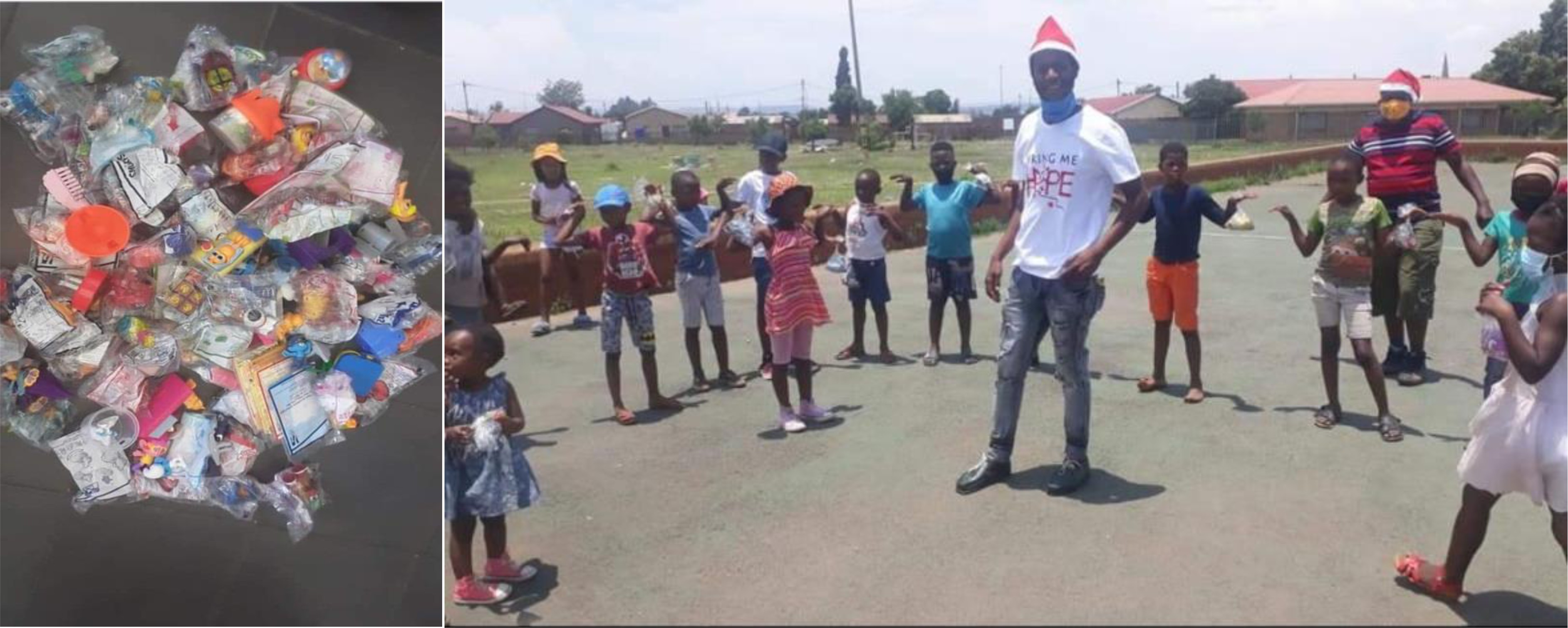 IN THE SAME INITIATIVE WE DID A XMAS DRIVE 2020 WHICH ALSO INCLUDED OTHER ORGANISATIONS. DONATIONS FROM THE COMMUNITY FOR TOYS STATIONERY AND PRESENTS WERE DITRIBUTED AND WE WERE ASSISTED BY KHUTSONG SAPS WITH TION AND TRANSPORTATION AND EXTRA HELP.